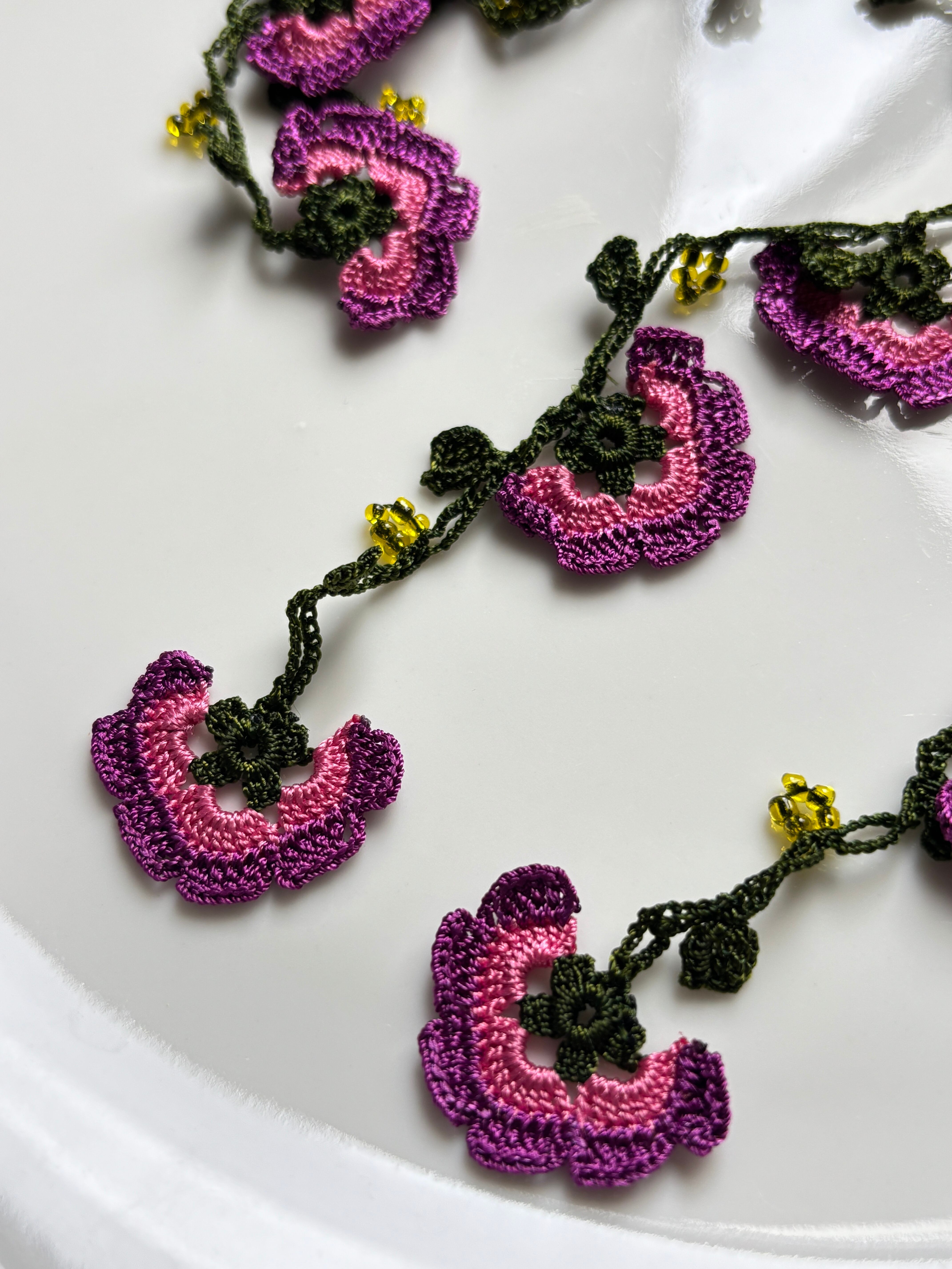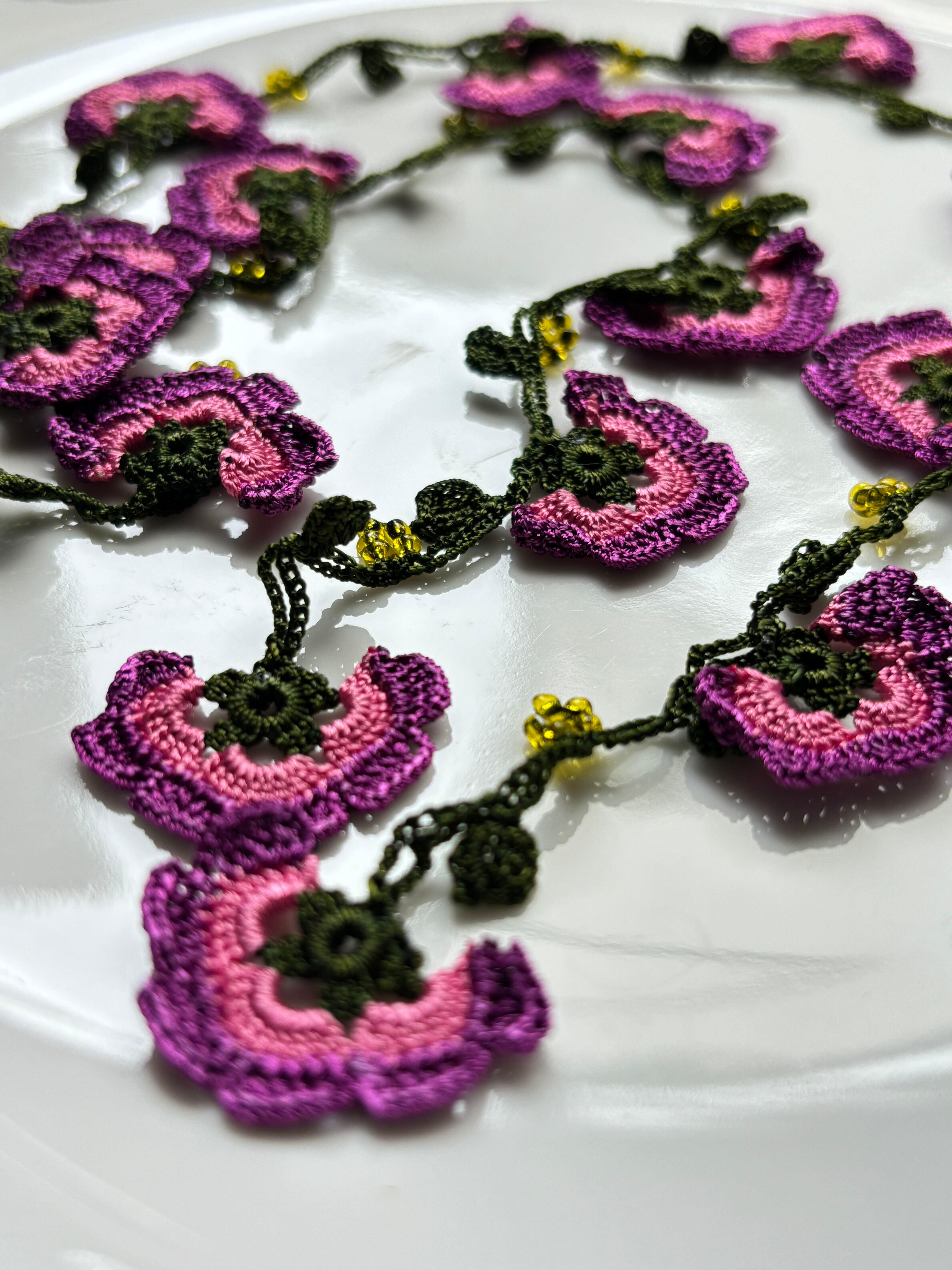 このラリエットは、手仕事による温もりが感じられ、普段使いにもぴったり。ビビッドなカラーのお花が、陽気な雰囲気をもたらし、どんなスタイルにもマッチします。自由自在にアレンジできるため、あなたの個性を存分に表現できるでしょう。